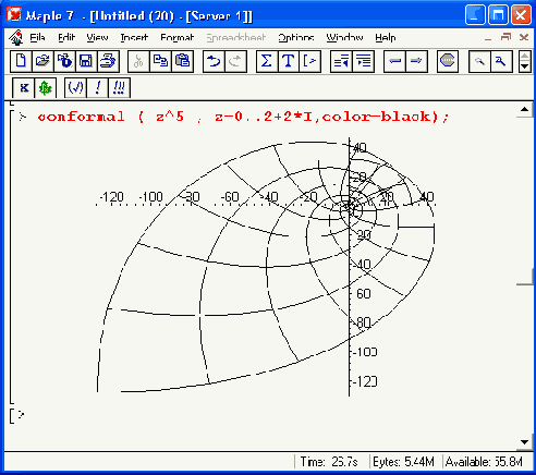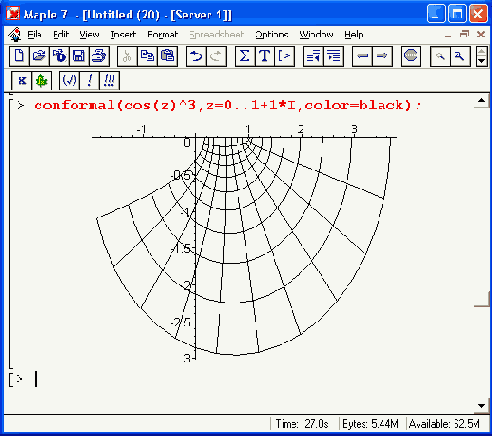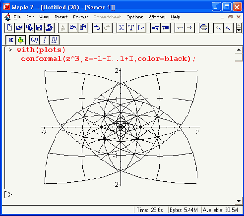 Средства конформного отображения в Maple 7, к сожалению, остаются рудиментарными и вряд ли достаточными для специалистов в этой области математики.
